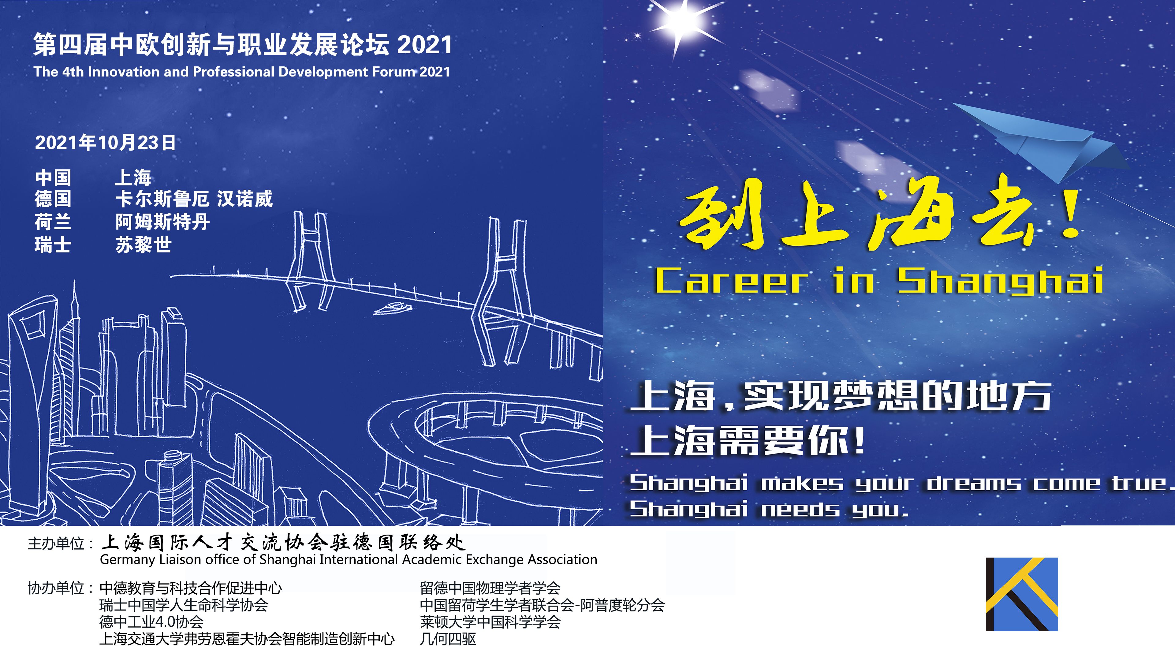 2021 10-23 The 4th"Career in Shanghai" Sino-European Innovation and Professional Development Forum 20 第四届中欧创新与职业发展论坛 2021于线上和卡尔斯鲁厄,汉诺威,阿姆斯特丹,苏黎世,上海的线下会场启幕 上海国际人才交流协会